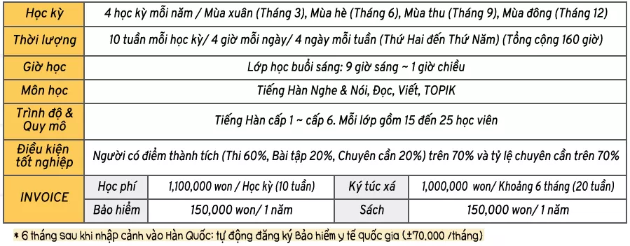 - Học phí tiếng Hàn: 4,400,000 KRW/1 năm