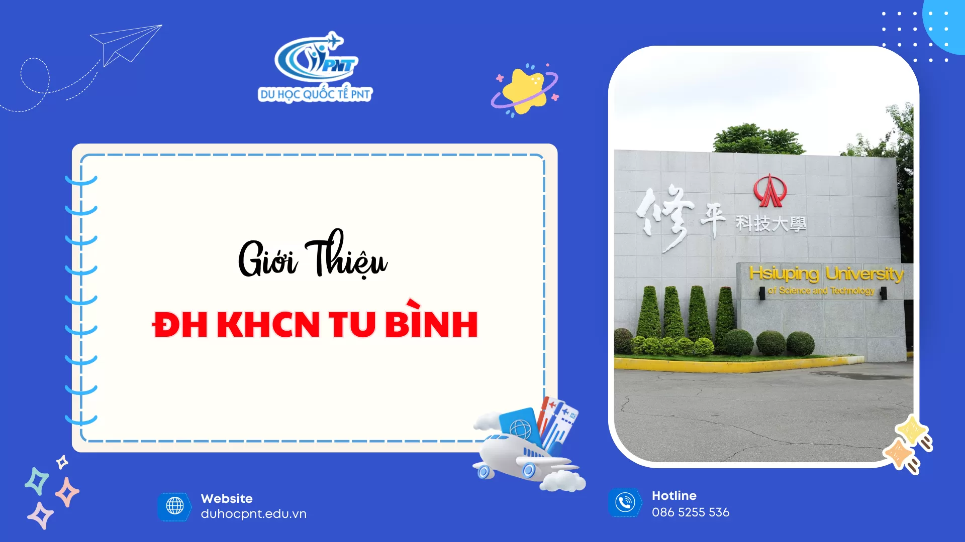 Sau khi đã tìm hiểu xong về Trường Đại học Khoa học Kỹ thuật Tu Bình, nếu các bạn đang có dự định du học Đài Loan tại trường này thì đừng ngần ngại liên hệ với PNT nhé!